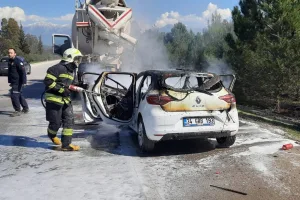 Alev topuna dönen otomobil kullanılamaz hale geldi
