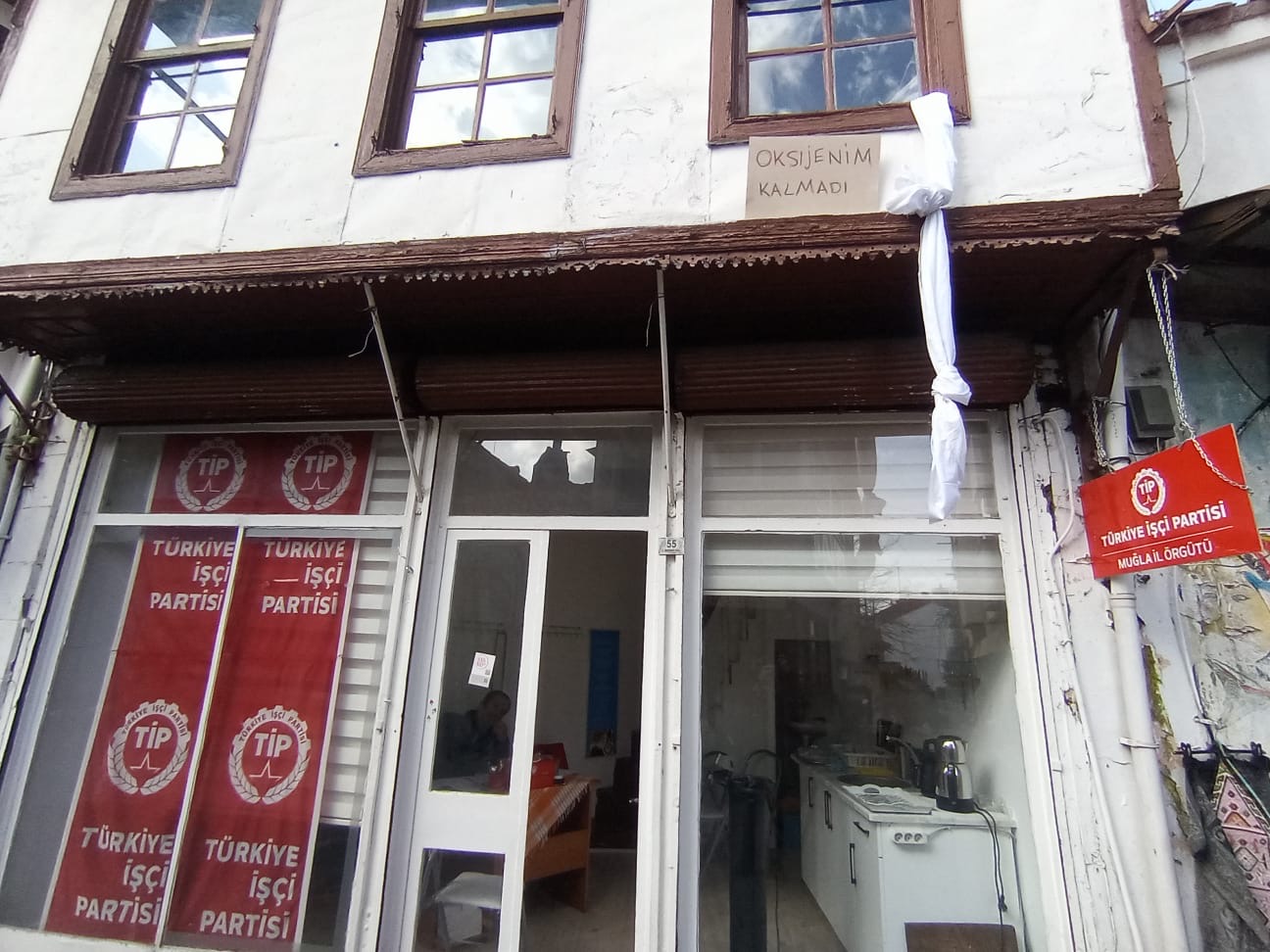 Türkiye İşçi Partisi (TİP) Menteşe İlçe Örgütü, 78 kişinin hayatını kaybettiği yangına dikkat çekmek için ilçe binasına “Oksijenim Kalmadı” yazılı pankart astı, camdan beyaz çarşaf sarkıttı.