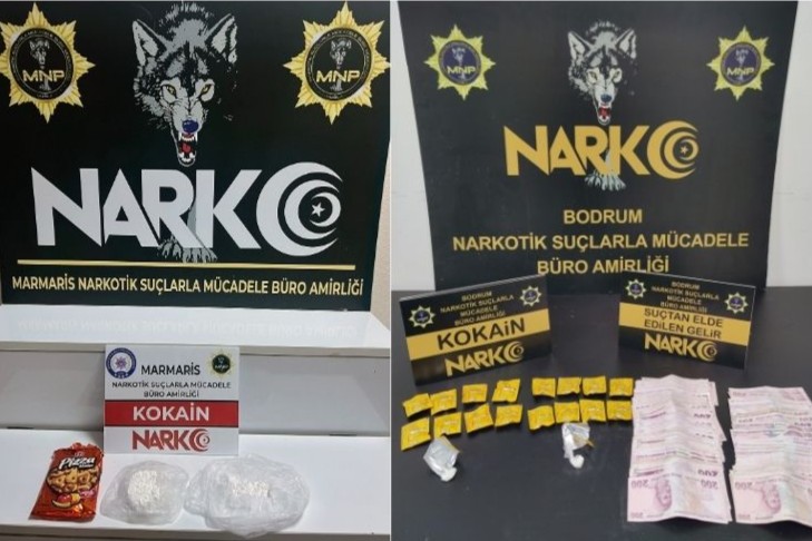 Muğla Emniyet Müdürlüğü Narkotik Suçlarla Mücadele Şube Müdürlüğü ekiplerince Muğla genelinde yapılan Narkotik Suçlarla Mücadele çalışmaları kapsamında uyuşturucu tacirlerine yönelik 5 ayrı operasyonda; 80,7 gram kokain maddesi, 105 adet sentetik ecza, 30 bin 600 TL suçtan elde edildiği değerlendirilen nakit para ele geçirildi.