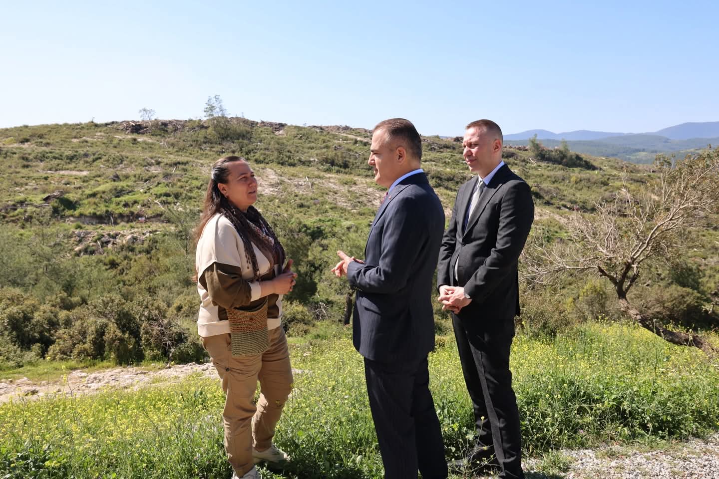 Vali Akbıyık’a ziyaret sırasında Milas Kaymakamı Mustafa Ünver Böke ile İkizköy Muhtarı Nejla Işık eşlik etti.