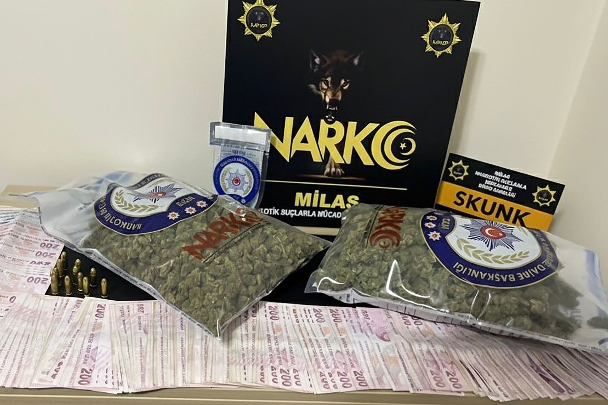 Muğla’nın Milas, Dalaman, Yatağan, Ula ve Menteşe ilçelerinde il dışından uyuşturucu madde getireceği değerlendirilen şahısların; araç ve ikametlerinde yapılan aramalarda; 2 kilo 100 gram metamfetamin maddesi, 1 kilo 119 gram skunk maddesi, 3 gram esrar, 2 adet A4 kağıda emdirilmiş sentetik kannabinoid (bonzai) maddesi, 11 adet fişek ve suçtan elde edildiği değerlendirilen 47 bin 075 TL para ele geçirildi.